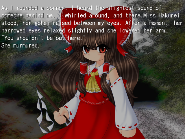 Hisoutensoku is an expansion to touhou 10.5, made by tasofro with ZUN's approval. It's a fast paced fighting game featuring all your favorites from the touhou project.