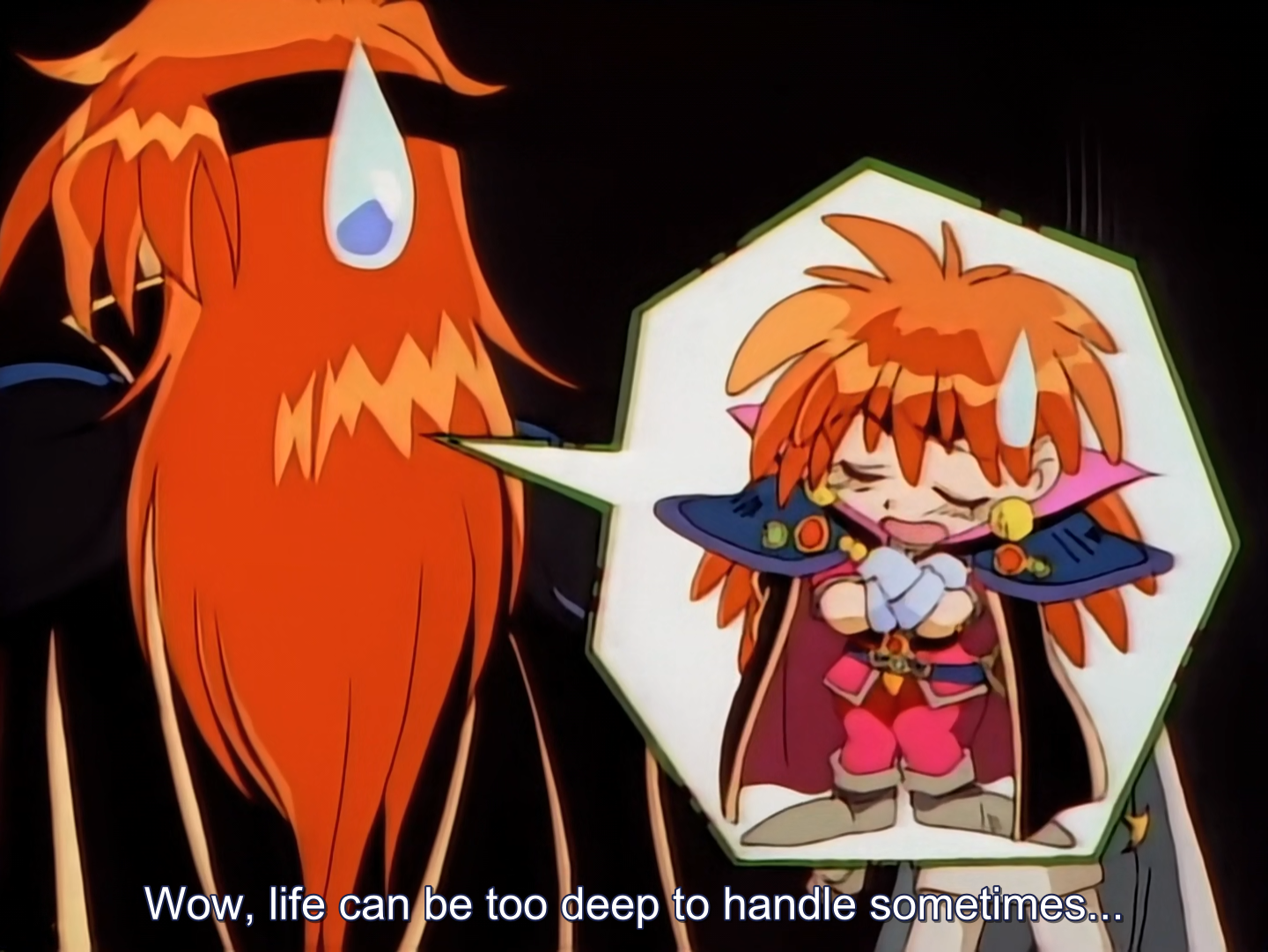 >>1070Well I finished Next, and you know what. It was quite good. Slayers can have its low points but it really can up the stakes right at the end, especially when you're watching this lighthearted adventure for a majority of it, only to see Lina kill a undead child, Xellos screaming as he loses an arm and Phibrizo killing all of the supporting cast one by one with no effort. It's stuff like this that really makes Slayers feel a bit different since it's always the light hearted comedy for the most part until someone REALLY wants to fuck shit up.
