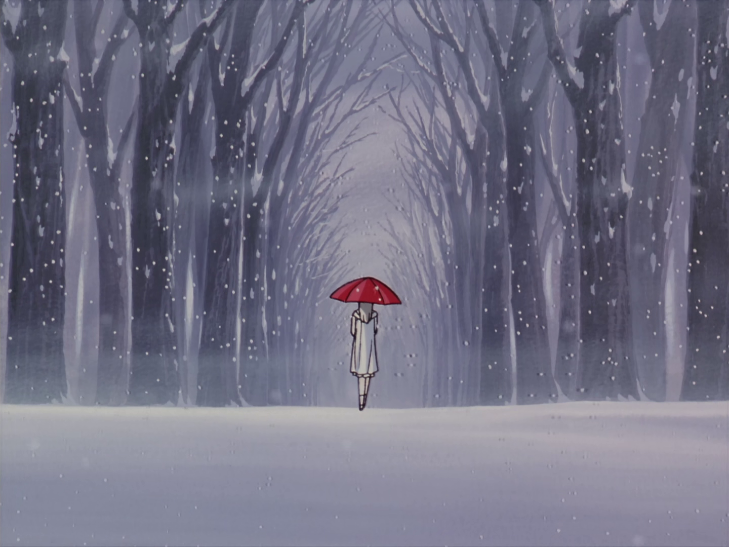 I wonder if they got the idea for the recurring bright red on soft background motif that they use way later on in Snow Rondo from this episode (pic 1 is Eve Trap, 2 is Snow Rondo), I wouldn't be surprised. It seems like it's a way the show/director likes signifying memories.