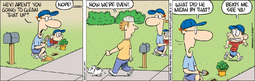 OP coming back around. I came around to Calvin & Hobbes. First, I'm a bit shocked at how 1980's the strip is. I guess I should have seen that coming, but it's still odd to read a comic strip that so immerses itself in its era. It's different than just various cultural or current references, it's in the underlying foundations of the comic itself. It's like how the Simpsons is very 1990's; it's more than just the topical jokes, it's a part of what it is fundamentally. It's also interesting how "postmodern," for lack of a better word, the strip is. A lot of the jokes boil down to doing cartoony stuff but ending them with realistic outcomes. For example, one Sunday is of Calvin attempting to paraglide off of the back of his red wagon with an umbrella. He is dragged across the ground, runs into a tree, and falls into a lake. Cartoons are the area where stuff like that should be able to happen, but C&H is having none of it. It works very well. The science fiction stuff struck me as quite off color at first, but I've come around to it now. The joys of childhood. I was also surprised that the comic is so open about Hobbes not being real.