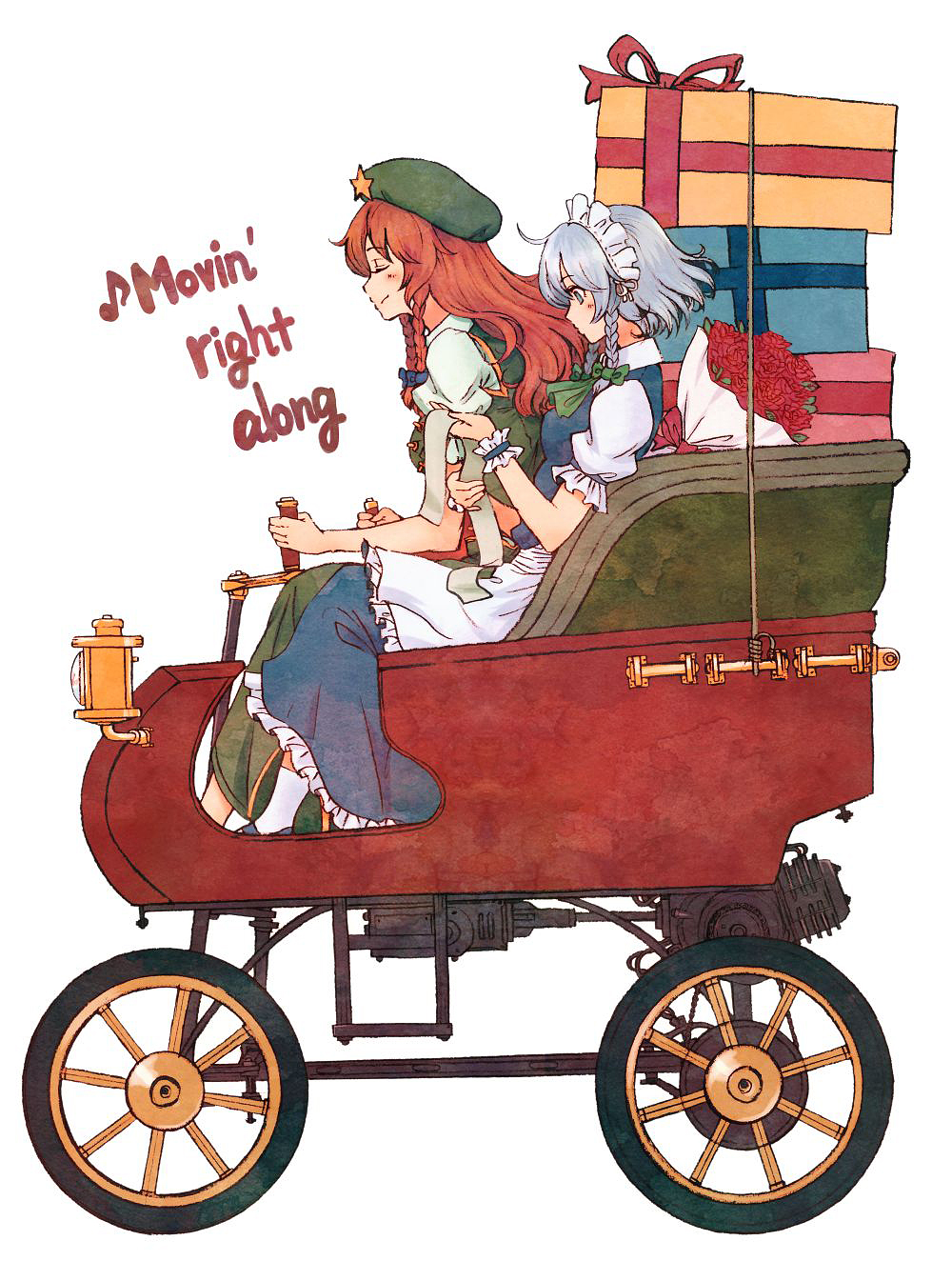 Seeing picrel this morning helped me put it into words. They're on some whimsical errand in their old-fashioned motor car, and you can imagine what happens before, during, and after. At the end, everything turns out fine. I daydream a lot, so this is all a personal view, but I think Touhou is something stronger than fantasy: it's a fairy tale. That's what makes it different and special.