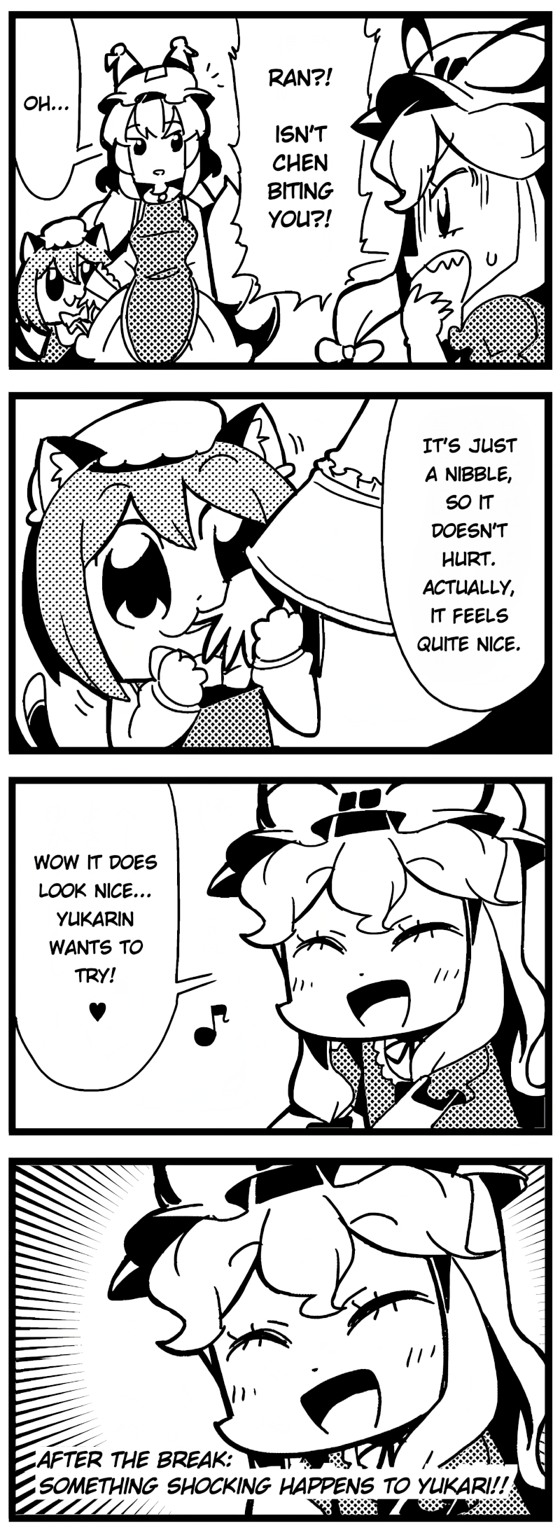 >>86It's a little bit of everything. Aside from the gameplay, music, art (despite people poking fun at it), cute girls, and being in the right place at the right time on 2000s internet, I think it grew because the world is as open-ended as it is. There isn't a cool plot or any defining climax, and at the end of every incident everything goes back to the status quo, but that's why it's so appealing. Gensokyo is a world, not like those made by modern worldbuilders who over-detail everything from the start without any purpose and think they're going to be the next Tolkien, but like Wind in the Willows: a place you can daydream of, between old and new, between fantasy and reality, and as whimsical as can be. What you see in the games and writings is just a portrait, a brief snapshot of that world, but the rest is on the other side. Artists and writers and even completely unskilled fans latched onto that so they could explore it.