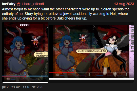 >>1050whenever you make a new 4/jp/ thread it may be helpful to make one on kissu as well since they've got an active touhou userbase and not all of their users regularly browse here