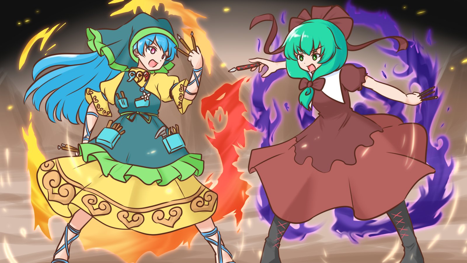 hisoutensoku is an expansion to touhou 10.5, made by tasofro with ZUN's approval. It's a fast paced fighting game featuring all your favorites from the touhou project.