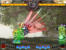 > as are fullscreen lasersThis laser gotta be Marisa's most busted move, literally unpunishable bullet even if you graze it. It soon will be a year since I've first encountered a Marisa player, and I still don't get what am I supposed to do with it since blocking results into death, and grazing it results into being hit by it if I try something too early, or zero risk cancel into melee if I don't get hit by laser.