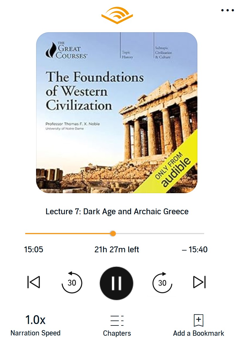 I like the Great Courses too my good sir, I'm listening (and watching) to How to Listen and Understand Great Music by Robert Greenberg. I don't like how he spergs out against certain germans and seems to excuse some fucked up Jewish individuals; but otherwise it's very good.