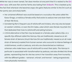 Then that leaves Ran who is… something? Something magical? Given the theming she should be part of Japanese folklore as well, but she's too vague to fit anything and the series never identifies it. Fans have tried to figure it out for 40 years.