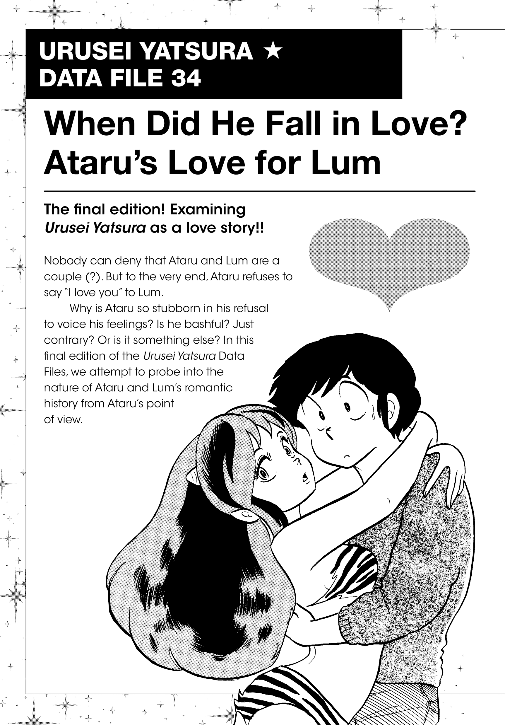 This primarily talks about why and when Ataru fell in love with Lum, but honestly, Lum is an easygoing girl for the most part. Ataru makes her laugh and makes life exciting. And despite everything, he's still better than Rei (another manga extra discusses how it seems space has a lot of just awful suitors). The Deranged Marriage arc really showcased that.