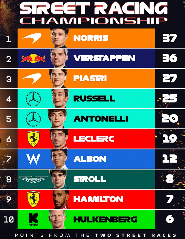 >2025 WCC StandingsMcLaren Mercedes: 188 (+37)