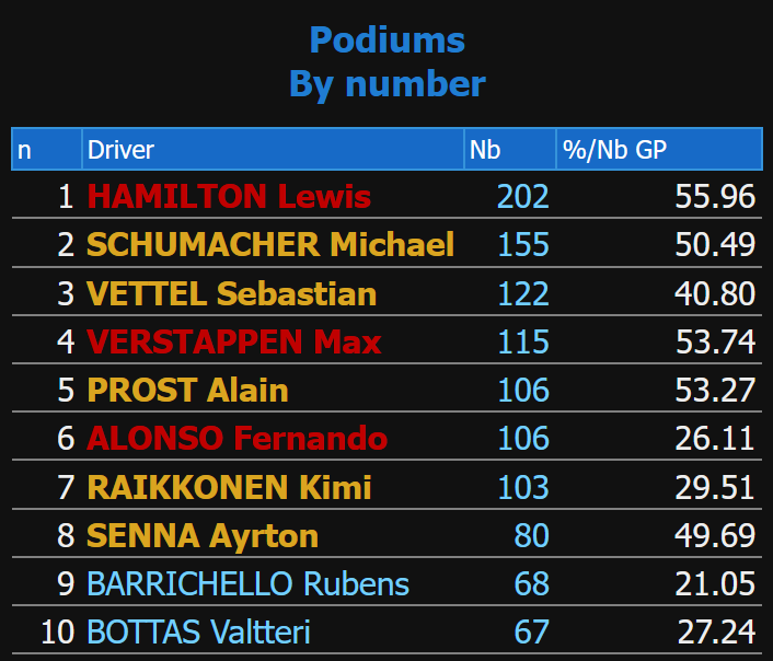 >Nico Hülkenberg F1 Grands Prix without ever scoring a podium:235 (232 starts)