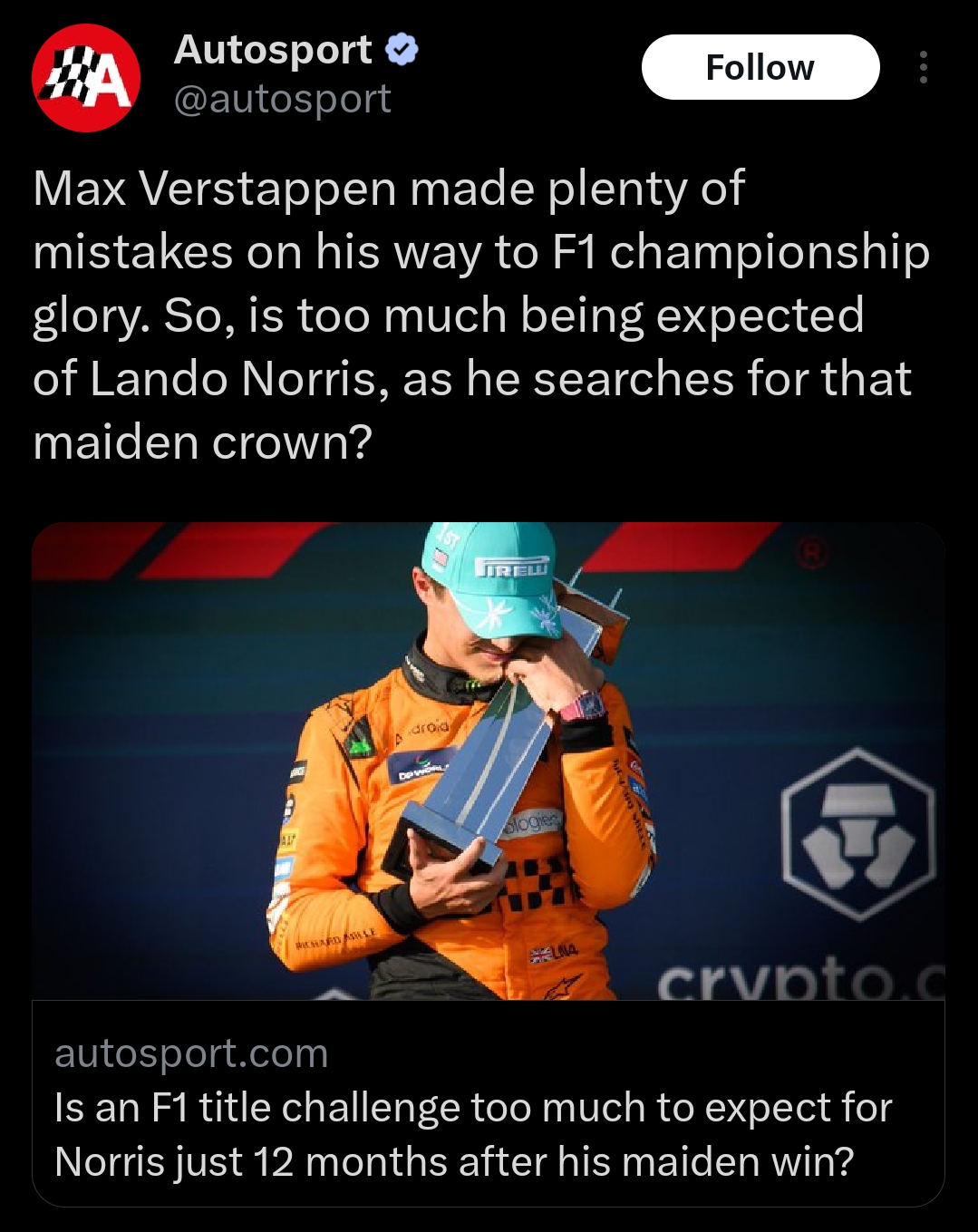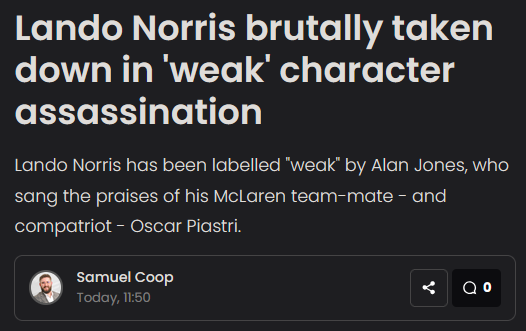 >>15022Max saved him by giving him an excuse for getting knocked out of SQ1. He didn't have the pace to get out anyway.
