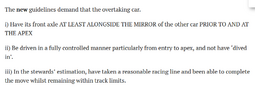 theyve gone too far in trying to regulate passing instead of having the stewards do what they should which is have a group of experienced people look at the situation and make a judgement