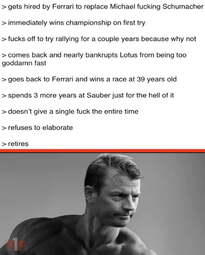 >wins a grand prix in his first race without the fastest car the next week