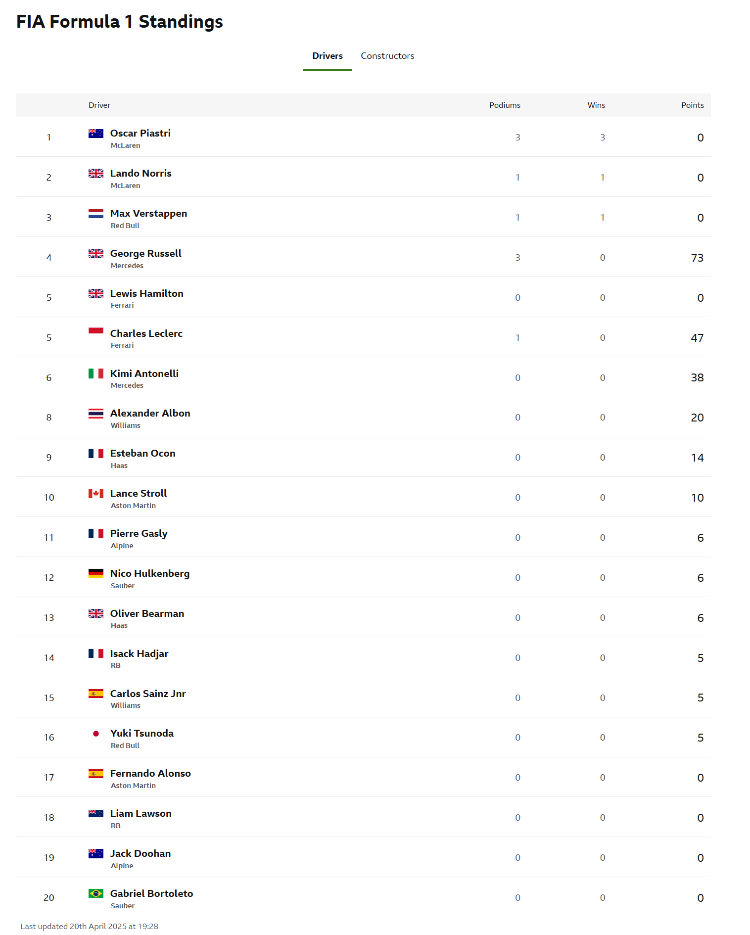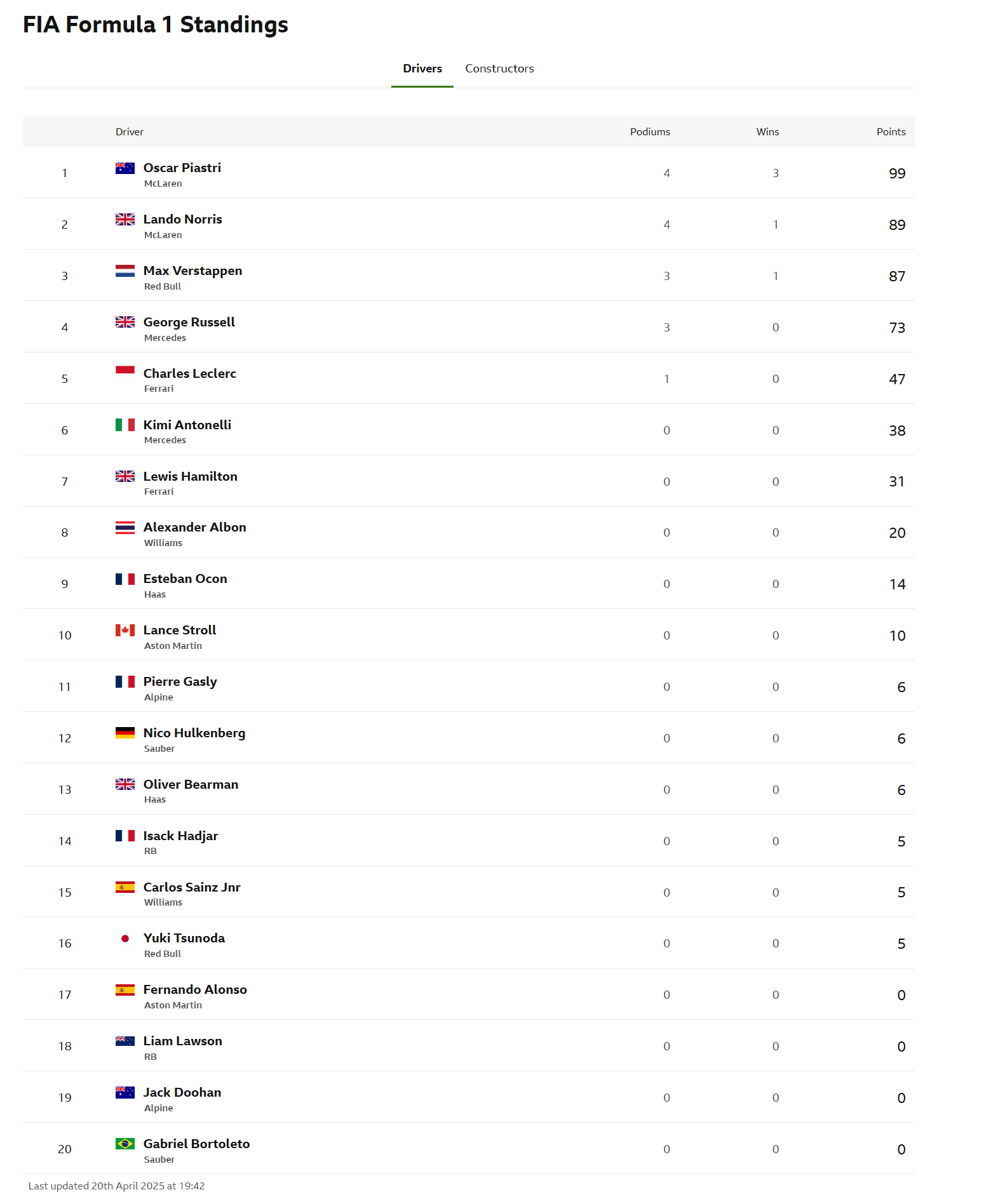 >2025 WDC StandingsNOR: 77 (+15)