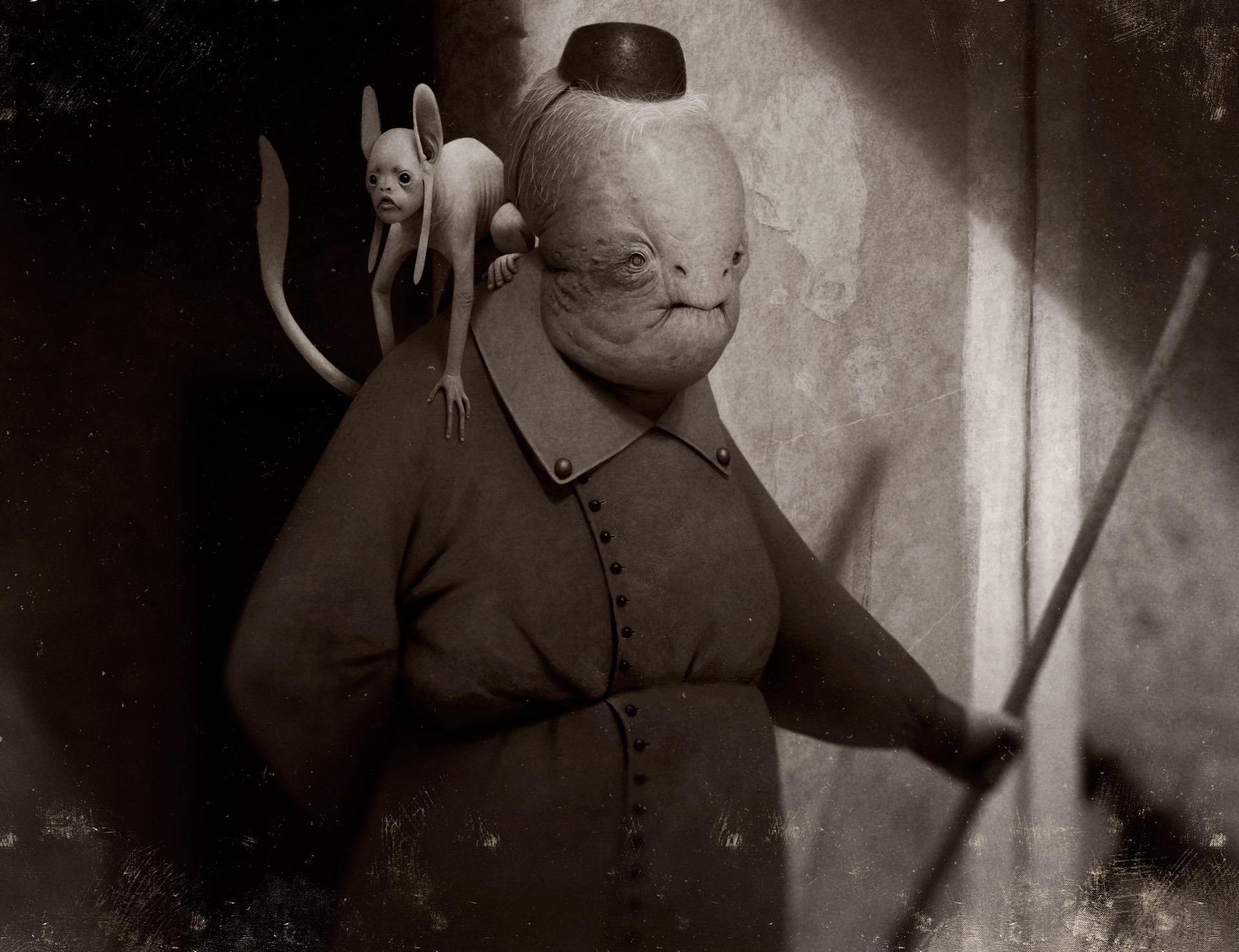 I found an interesting Brazilian artist on ArtStation yesterday. There's something about his art style that reminds me of Hieronymus Bosch's paintings, but I don't know what it is. Anyway, maybe it's just me imagining things. Something I really like about his work is that he usually writes a little story to accompany his works. For instance, here's the story behind the image I attached to this post:
