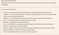>Magicchan was an amazing site, one of the bestI think I agree with you. I was posting there from the first day til' it's passing. Being part of the handful of anons who "regularly" posted in an attempt to encourage posting from each other and visitors. It was really something unique. To be completely honest, I think we all knew we were a rag-tag group of loners, maybe even self-described "bores", but the fact we still tried to uphold a community so minute amongst each other with fairly different interests for such a consistent period is just really inspiring for me, in hindsight.