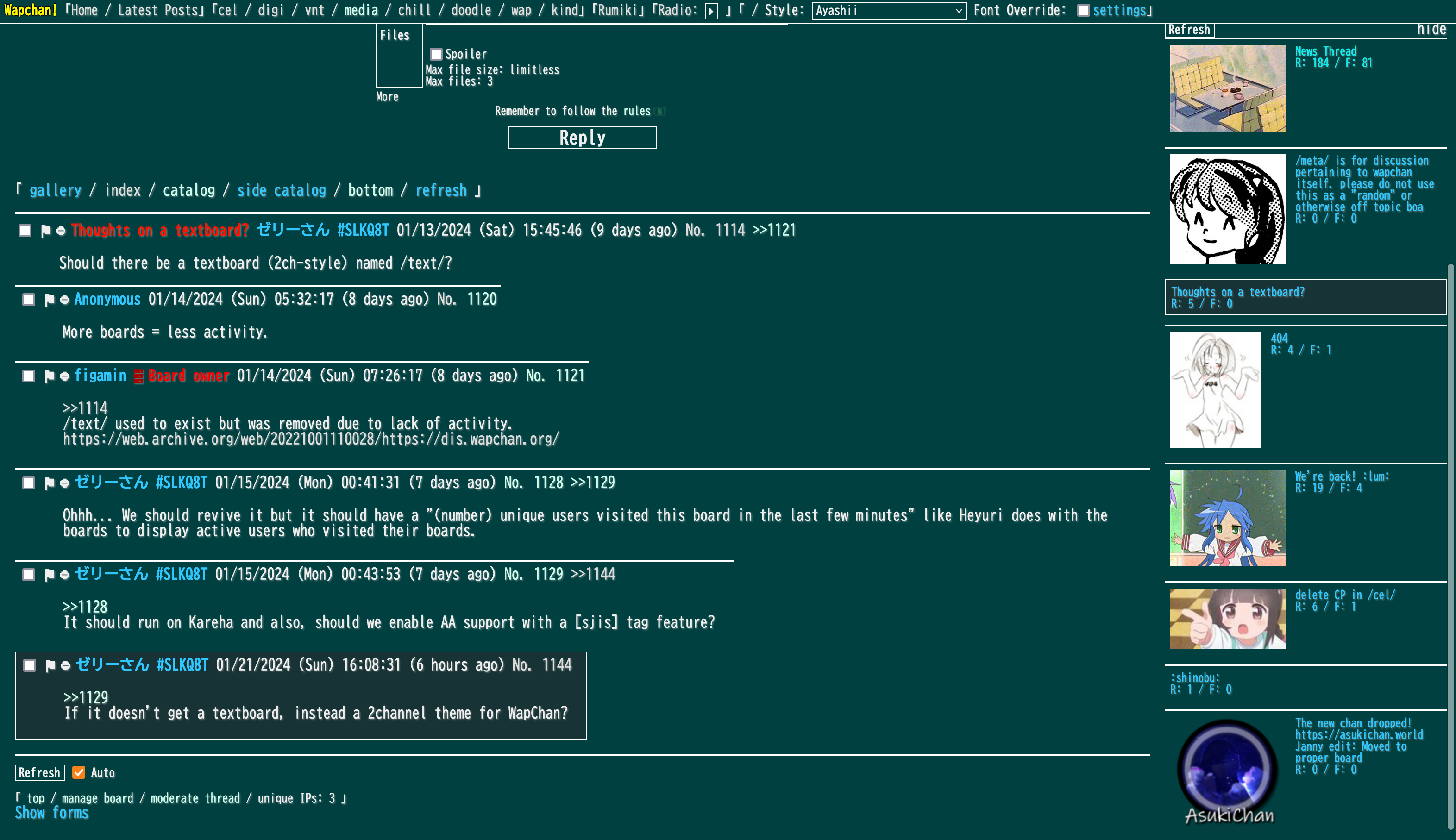 This place is really nice looking, I love the general look of all the boards, specially /chill/, it's my favorite.